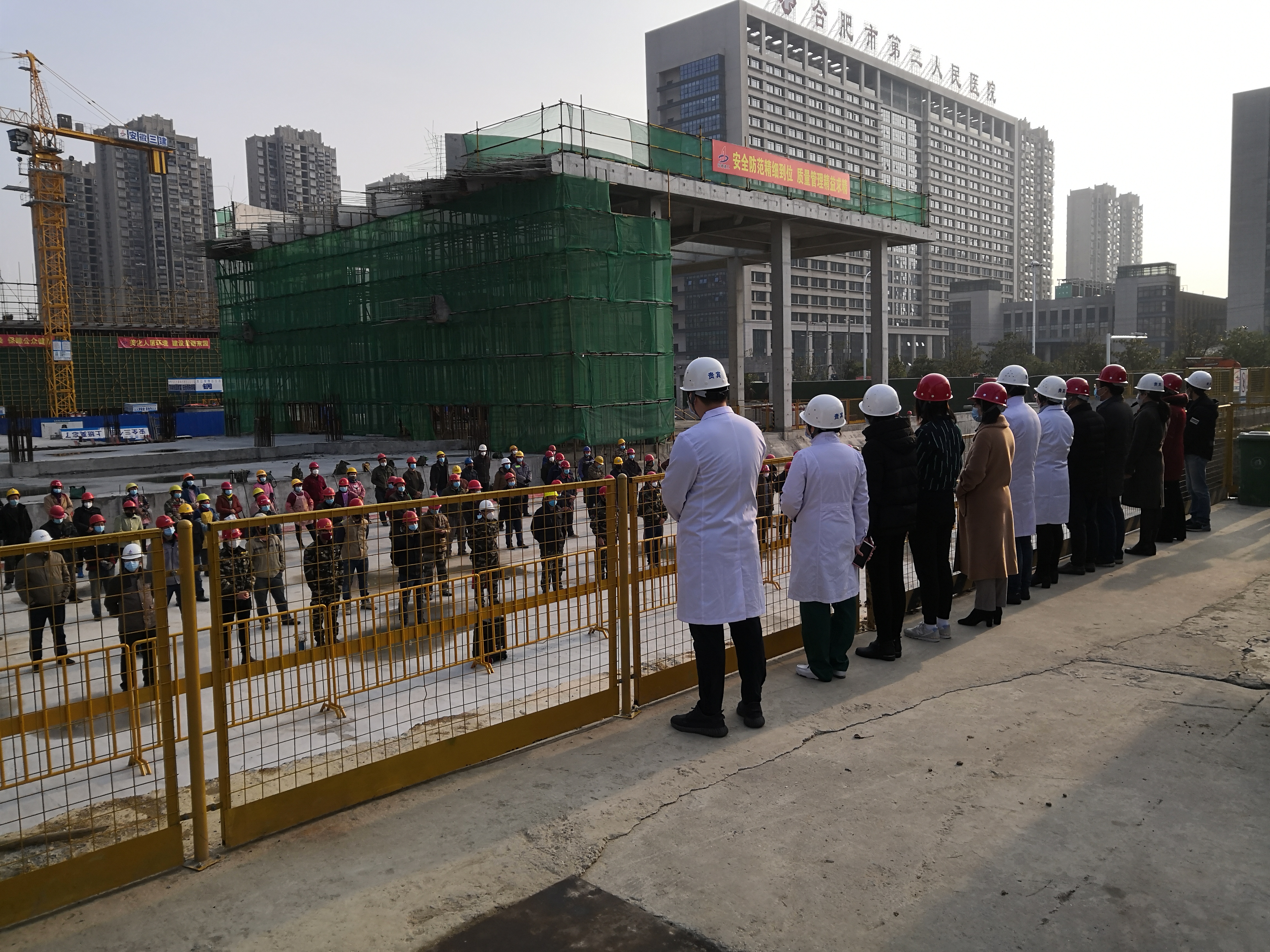 八公司積極配合合肥市疫情防治工作,春節(jié)期間加班將原合肥市二院項目辦公區(qū)移交給市二院作為隔離病房使用。為盡快復工,2月24日,項目部與市二院負責人溝通協商重建臨時辦公區(qū)。2月28日,項目負責人高瑞凱帶領項目部全體管理人員突擊辦公區(qū)建設,3月2日,辦公區(qū)完成建設,將施工現場與市二院高危區(qū)域徹底隔絕,順利實現復工。為做好項目防疫宣傳教育工作,3月3日項目部聯合市二院疫情防治辦技術專家為農民工開展“疫情防治教程”培訓,為農民工兄弟講解“消毒”、“洗手”、“口罩佩戴”、“交通出行”等正確做法,普及防控知識,確保廣大職工健康安全。